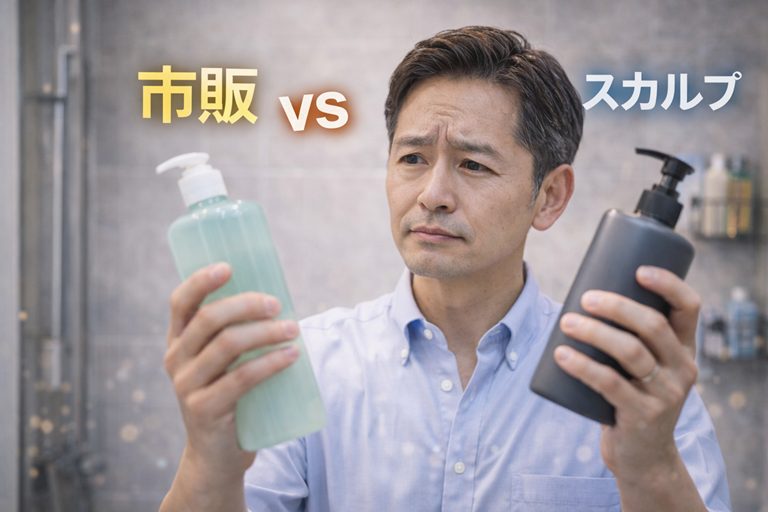 本記事では、市販シャンプーとスカルプシャンプーの違いを成分・目的・向いている人の視点から比較し、40代男性が後悔しない選び方を解説します。